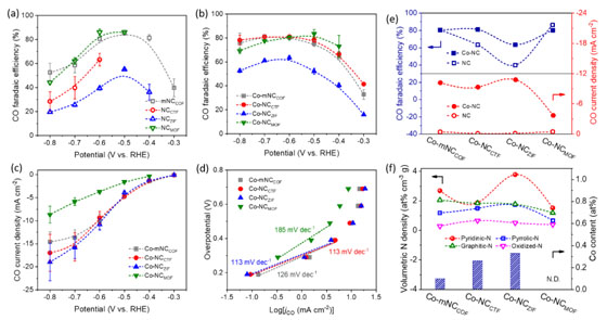 图1. COF演变的氮掺杂碳配位不同过渡金属离子用于高效CO2电化学还原