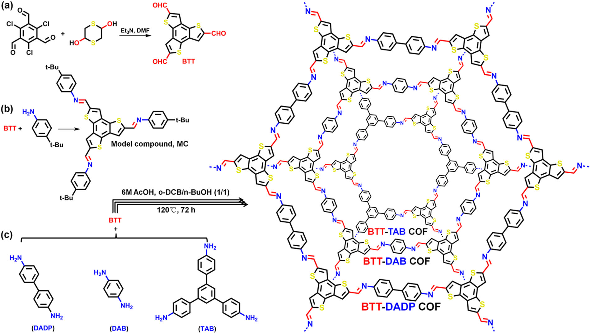 题目:Benzotrithiophene-based Covalent Organic Frameworks: Construction and Structure Transformation under Ionothermal Condition 第一作者:Hongtao Wei(魏红涛), Jing Ning(宁静), Xingdi Cao(曹兴弟) 通讯作者:Long Hao(郝龙) 单位:College of Chemistry and Pharmaceutical Sciences, Qingdao Agricultural University (williamhill体育中文 williamhill中国) 文章网址: http://dx.doi.org/10.1021/jacs.8b08282 DOI:10.1021/jacs.8b08282 摘要:A C3-symmetric benzotrithiophene tricarbaldehyde (BTT) is synthesized for the first time with a facile method, which is used to construct BTT-based covalent organic frameworks (COFs) with different pore sizes. Meanwhile,the structure transformations of the COFs under high-temperature ionothermal condition are studied systematically, and the relationships between the regularly changed structures of the further-crosslinked COFs and their supercapacitor performances are investigated. It turns out that dealing COFs of designated structures under ionothermal condition is a great method to build high-conductive structure-controllable materials for electrochemical applications.