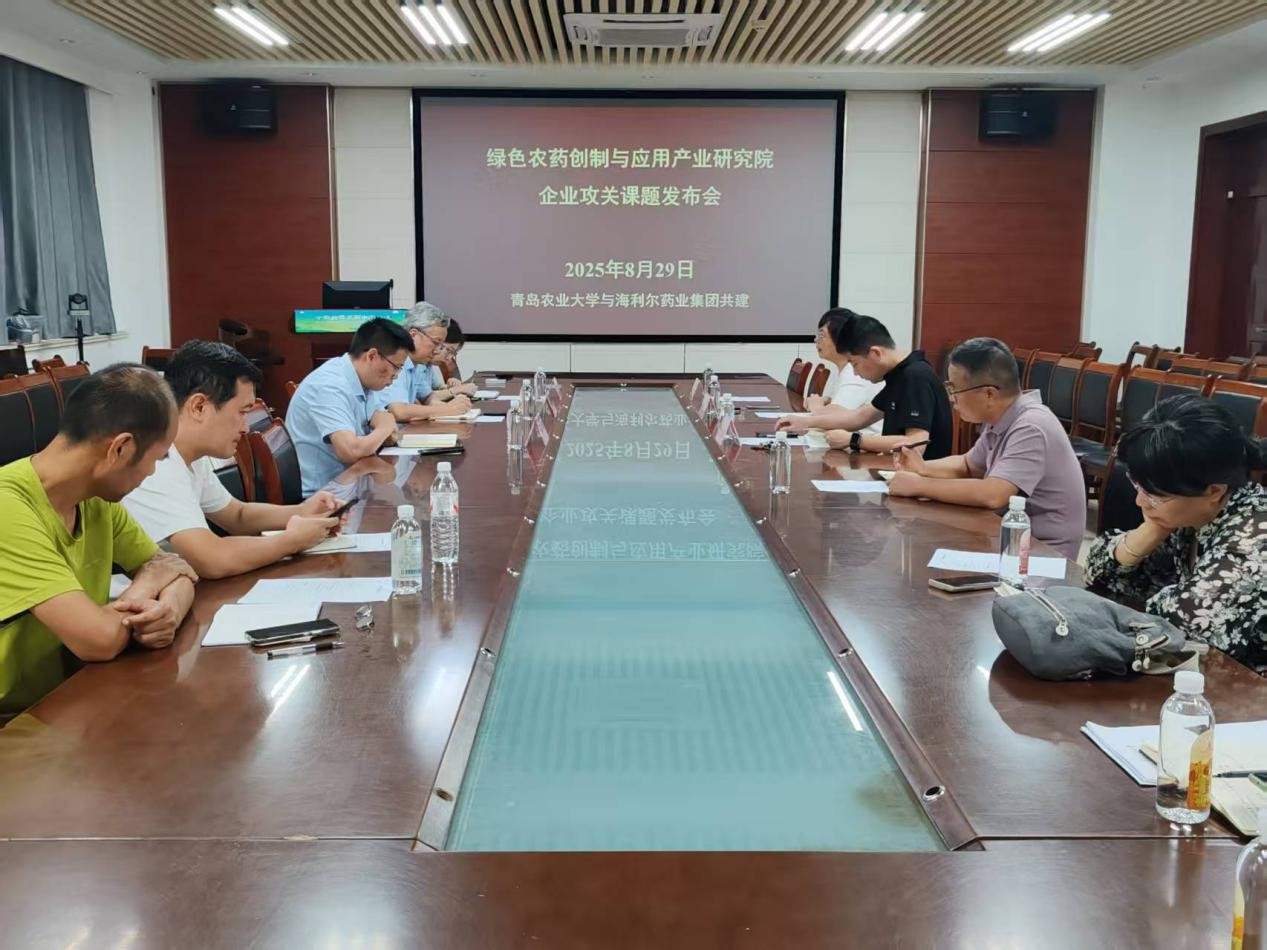 会议伊始,龚良玉依次介绍参会人员并表达学院对与海利尔公司合作的高度重视。随后,李帅帅围绕研究院工作提出三大核心方向:一是构建学科科研群,依托学科优势,建立长期、系统、高效的校企合作机制;二是强化实践育人,通过企业项目合作提升研究生实践能力,培养契合行业需求的人才;三是深化产学研融合,以合作企业攻关项目为契机,强化产学研合作,为农药行业可持续发展贡献力量。同时,李帅帅进一步发布企业攻关课题,聚焦产业问题,明确研究方向。海利尔集团总裁助理张宗俭详细阐述了项目需求及对接方式,并表示集团对本次合作寄予厚望。最后,龚良玉总结指出,工作推进要先行实践、逐步深化,合作注重线下精准对接,以小项目切入,循序渐进,推动农药产业做大做强。