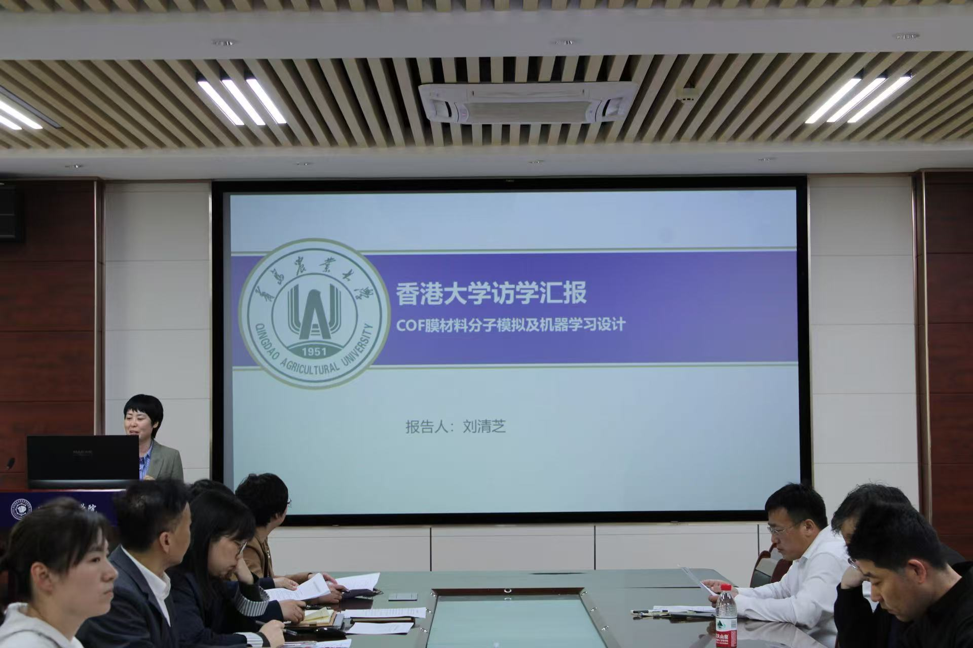 会上,刘清芝以COF膜材料分子模拟及机器学习设计为题,系统汇报在港期间的科研工作与学术收获。访学期间,她依托香港大学优质科研平台,围绕分离膜功能化提质关键方向,运用分子动力学模拟系统研究孔径、层间距、官能团等核心结构参数对脱盐性能的影响规律,精准厘清关键构效关系。同时,她构建专属COF结构与性能数据库,搭建高效机器学习预测筛选模型,实现膜材料关键性能快速预判与结构逆向优化,为高性能反渗透膜绿色开发提供可靠新思路、新方法。此外,她深度融入港大科研团队,扎实参与联合课题攻关、高水平学术会议交流及权威期刊审稿等多项学术工作,严谨务实的科研态度和扎实的专业功底,得到香港大学科研团队的充分肯定与高度认可。