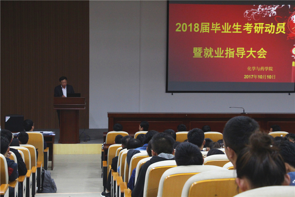 会上,李峰教授从考研目的、考研准备、国家研究生招生趋势与现状、研究生报考择校等方面为学生做考研主题报告,同时,他分别从化药学院科研团队建设、基金获得和高水平论文发表、各团队荣誉等方面,详细介绍了学院各科研团队的科研实力及目前研究生招生需求、和研究生培养优惠政策,鼓励有志向的同学合理选择专业、定位学校,为自身的发展做好合理规划。讲座中,他以丰富的真实案例分析了考研对学生个人发展的重要性和必要性,他鼓励同学们说道:“考研就那么回事,不难,坚持下来,事就成了。”