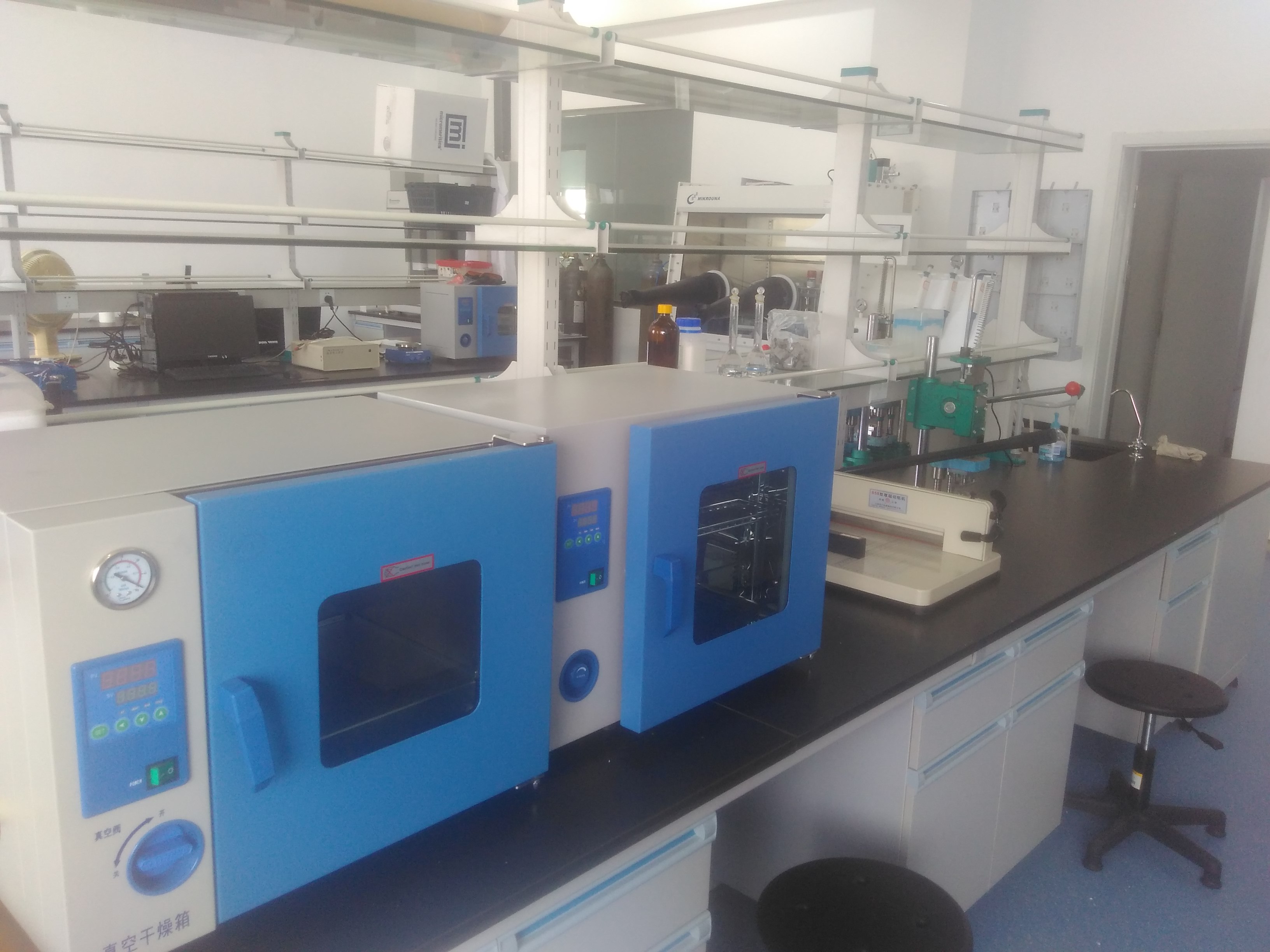 - 其他仪器:立式箱式炉、台式高速离心机、旋转蒸发仪、低温冷却循环泵、鼓风干燥烘箱、 程序控温鼓风烘箱、真空烘箱、超声波清洗仪、小型电动扣式电池封装机、液压扣式电池封装/拆卸机、微型震动球磨机、扣式电池切片机、手动粉末压片机、水焊机、万分之一天平、千分之一天平、百分之一天平、加热控温搅拌器(大龙、长城)、真空油泵、小型隔膜真空泵、小型紫外分析仪(有机合成点板)、Thinkpad工作站、联想电脑、冰箱、切纸机等