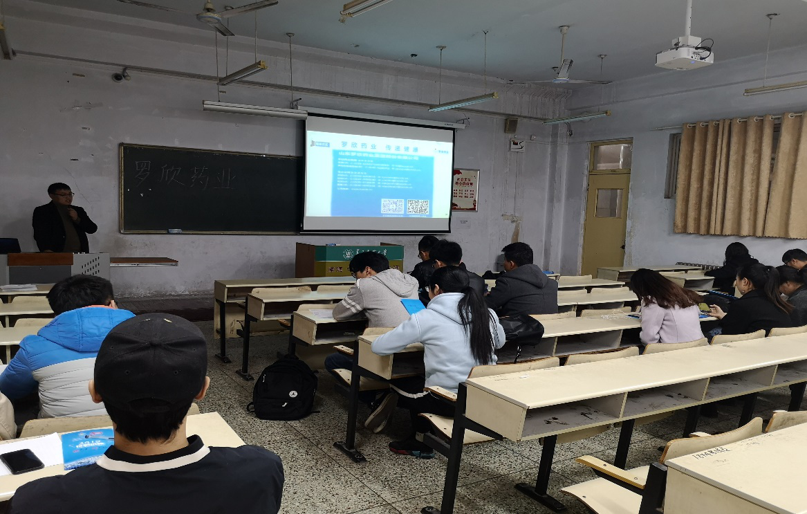 罗欣药业公司于3月21日下午六点半在教学区举办了专场招聘会,罗欣药业人力资源部经理李奎刚担任主讲人,通过播放企业视频和ppt讲解为大家展示了罗欣药业的各项信息,并当场收取了简历。