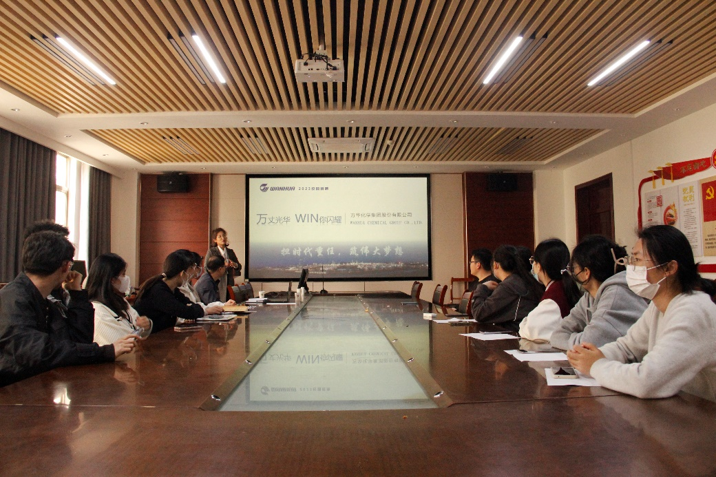 4月12日,williamhill中国于化学楼会议室举办万华化学集团股份有限公司专场招聘会。万华化学集团招聘负责人担任主讲人,学院2019级化工艺(3+2)毕业生代表参加。