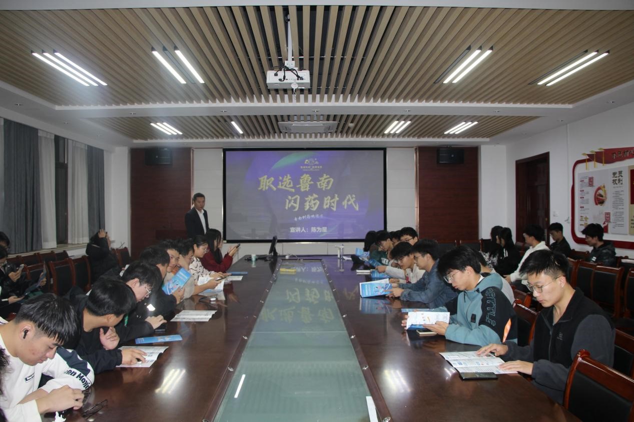宣讲会上,陈为星以“职选鲁南,闪药时代”为主题,首先介绍了企业发展历程,随后,从集团概况、集团构成、人才团队、未来规划、厂区环境等多方面向毕业生进行了展示,并对公司研发情况、福利待遇、人才招聘等方面进行了详细介绍。随后,毕业生提出与集团相关的问题,陈为星为大家一一解答。