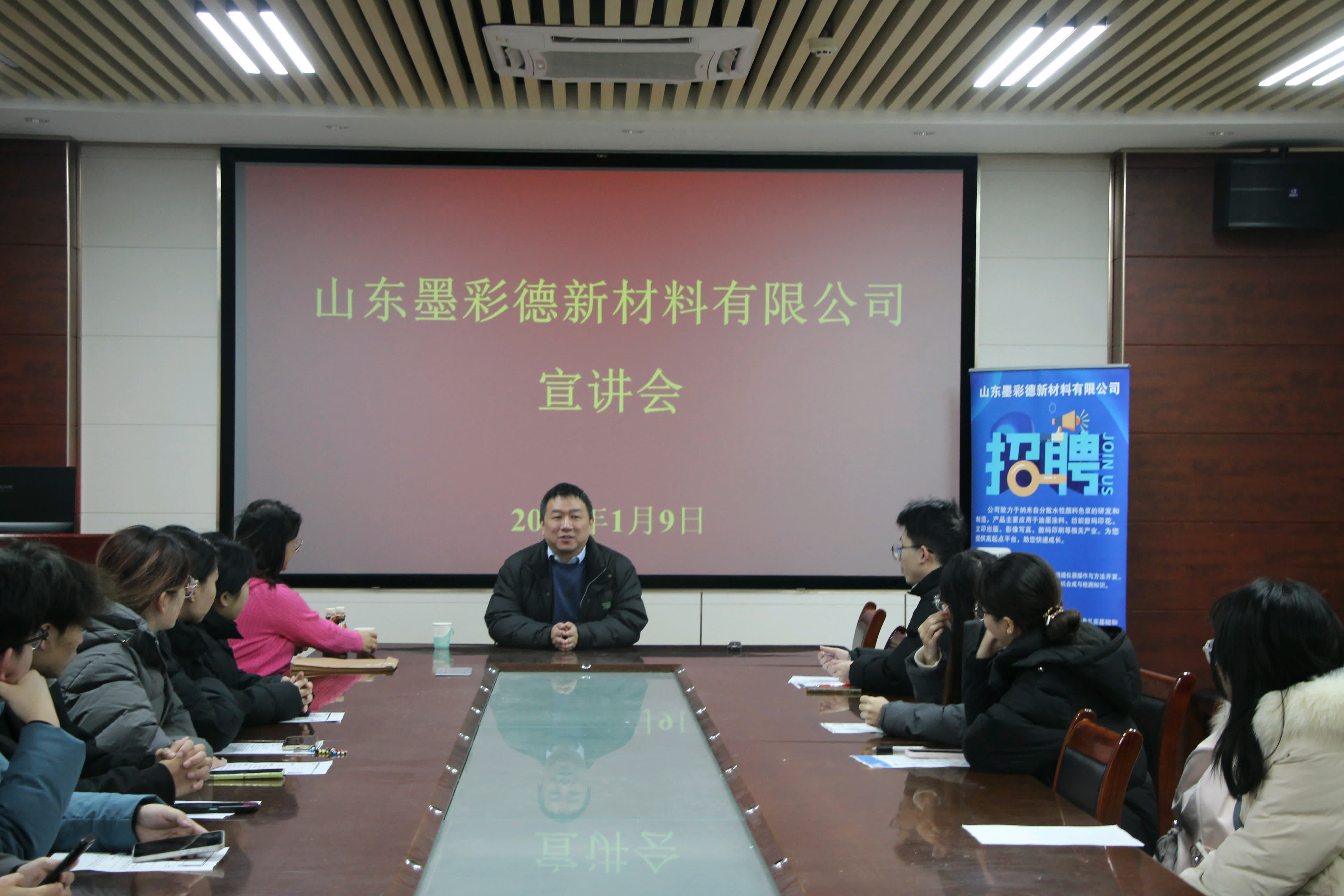 为深化校企合作、拓展就业渠道,促进学院高质量人才培养与产业需求精准对接,1月9日,williamhill中国于化学楼207议室举办山东墨彩德新材料有限公司招聘宣讲会,本次宣讲会由企业副总经理王锐主讲,学院2026届毕业生代表参会。