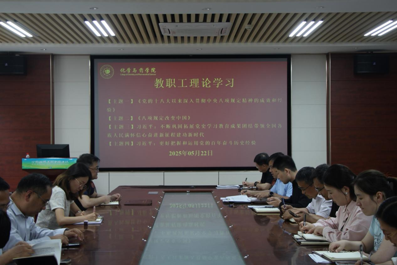 5月22日,学院于化学楼会议室207开展教职工理论学习,学院党委书记王进国主持,全体教职工参加。