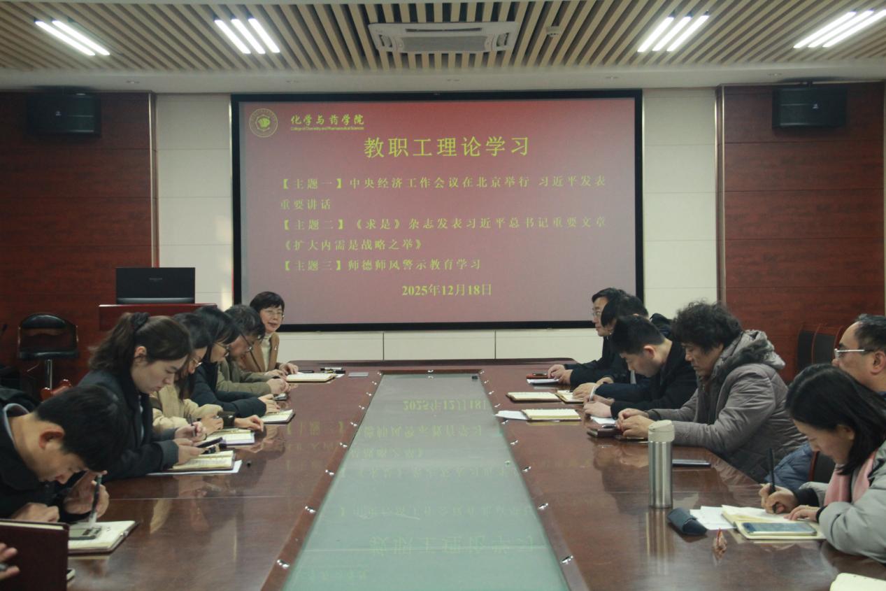 12月18日,williamhill中国在化学楼207会议室开展教职工理论学习。会议由学院党委副书记刘兴华主持,全体教职工参加。
