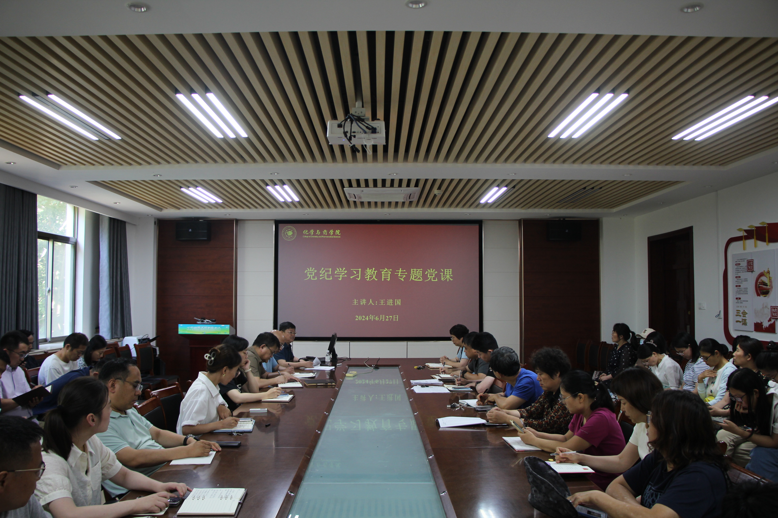 6月27日,williamhill中国于化学楼207开展党纪学习教育专题党课,会议由学院党委书记王进国主持,全体教职工参加。