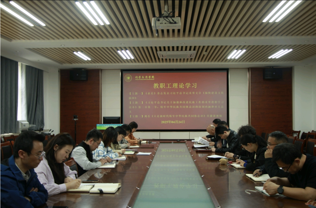 4月24日,学院于化学楼207开展教职工理论学习,学院党委书记王进国主持,全体教职工参加。