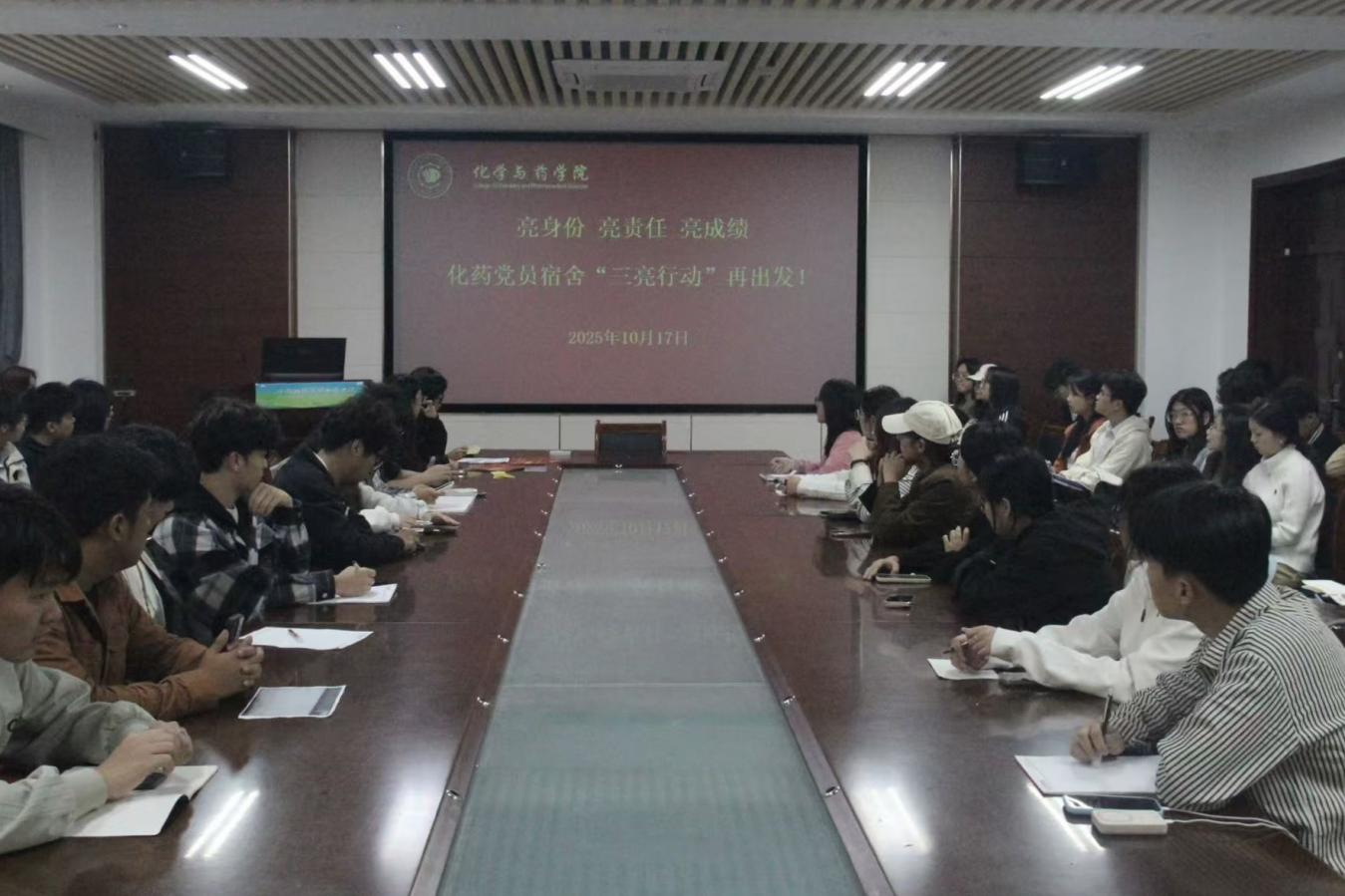 为充分发挥学生党员的先锋模范作用,营造整洁有序、积极向上的宿舍环境,10月17日,williamhill中国在化学楼207召开亮身份・亮责任・亮成绩--化药党员宿舍“三亮行动”再出发专项会议。会议由辅导员黄海红主持,22、23、24级各班班长及书记参加。