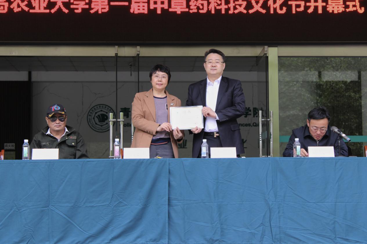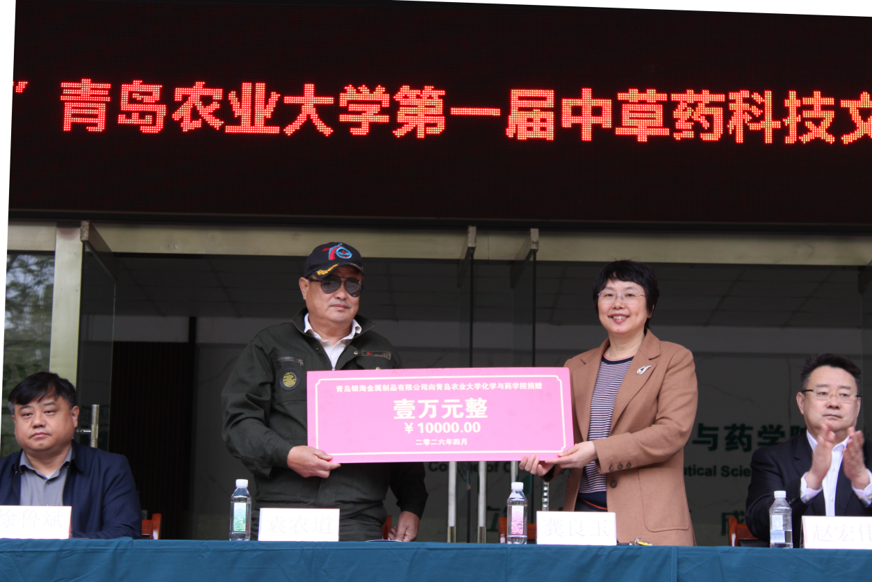 4月22日,“银海杯”williamhill体育中文第一届中草药科技文化节开幕式在化学楼举行。开幕式由学院党委副书记、副院长刘兴华主持,青岛红投控股集团高级金融顾问兼农投集团常务副总赵宏伟、青岛银海金属制品有限公司总经理袁农道应邀出席,学院院长龚良玉、副院长徐鲁斌及师生代表参加。