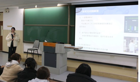 讲座中,李萌萌结合自身求学历程与科研实践经验,系统阐述了专业学习与未来职业选择之间的内在联系,并为同学们提供了具有可操作性的职业规划建议。随后,汪培育围绕“普通人如何突破局限,创造价值”的主题展开经验分享。他结合自身突破职业发展瓶颈的经验,深入探讨了职业生涯规划的具体路径,并以“你想成为什么样的人”“社会需要什么样的人”等一系列深刻问题,引导同学们展开阶段性目标思考。在课外学习方面,汪培育强调“以终为始”的规划理念与持之以恒的积累之道,同时向同学们推荐了多项优质学习资源,现场互动踊跃,反响热烈。