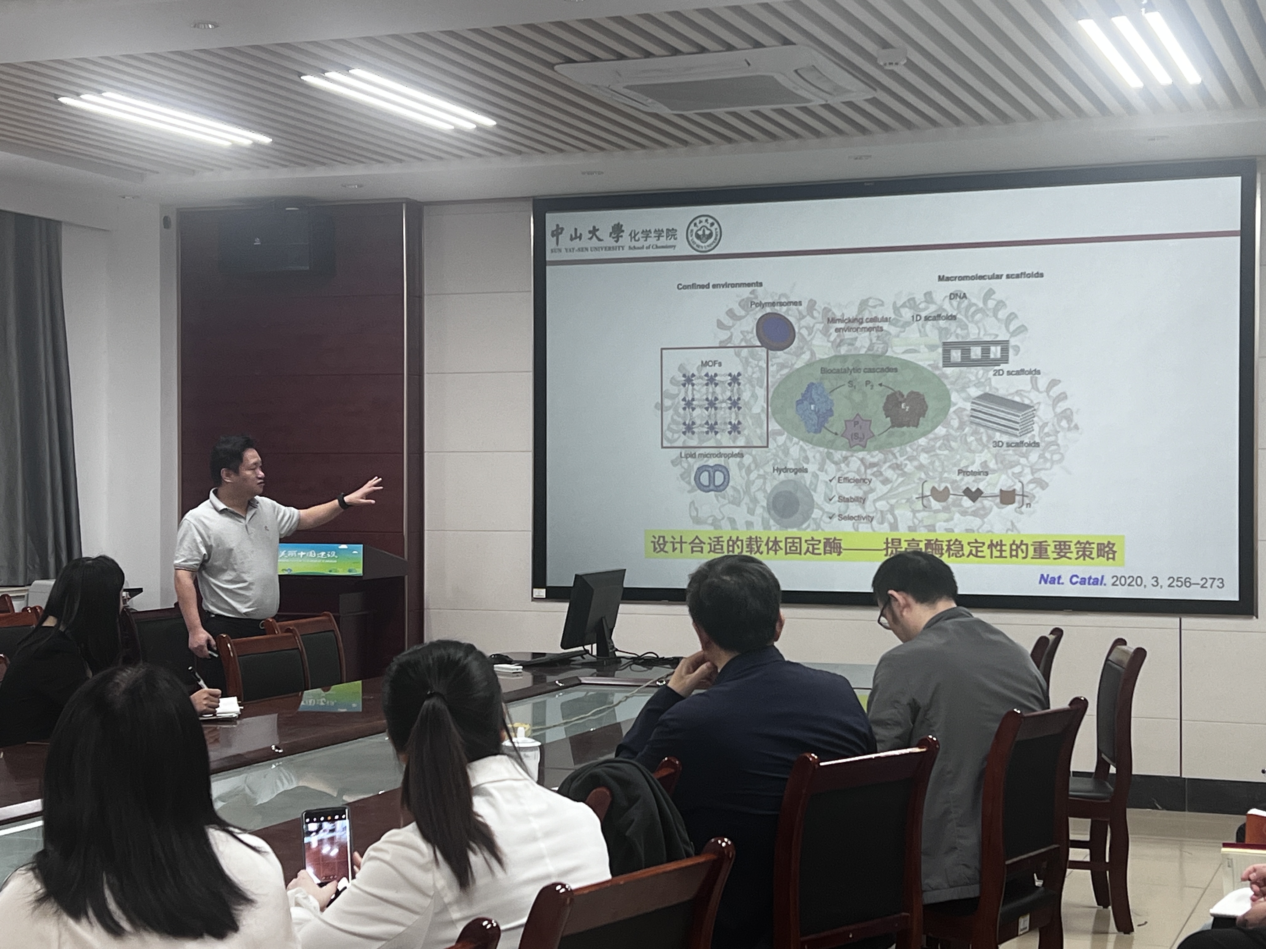 2024年10月12日,课题组邀请江南大学严秀平教授、中山大学欧阳钢锋教授到课题组指导工作,并分别作了题为《分子印迹共价有机骨架在食品危害物分析中的应用》、《多孔晶态框架限域级联传感与过氧化氢光催化合成》的精彩报告。