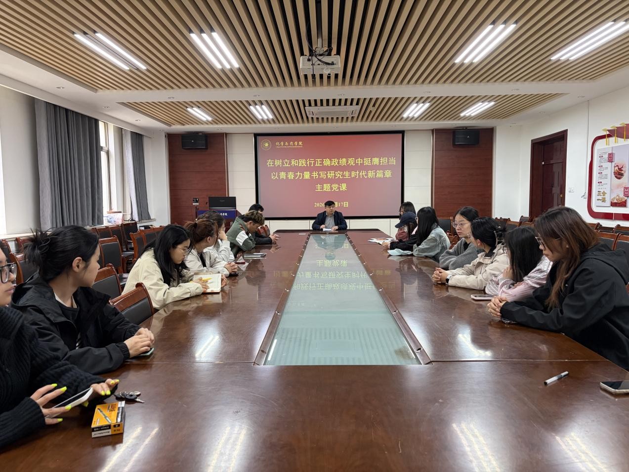 4月17日,williamhill中国第六(研究生)党支部于化学楼会议室开展“在树立和践行正确政绩观中挺膺担当 以青春力量书写研究生时代新篇章”主题党课学习,此次党课由学院副院长徐鲁斌主讲,支部全体党员参加。