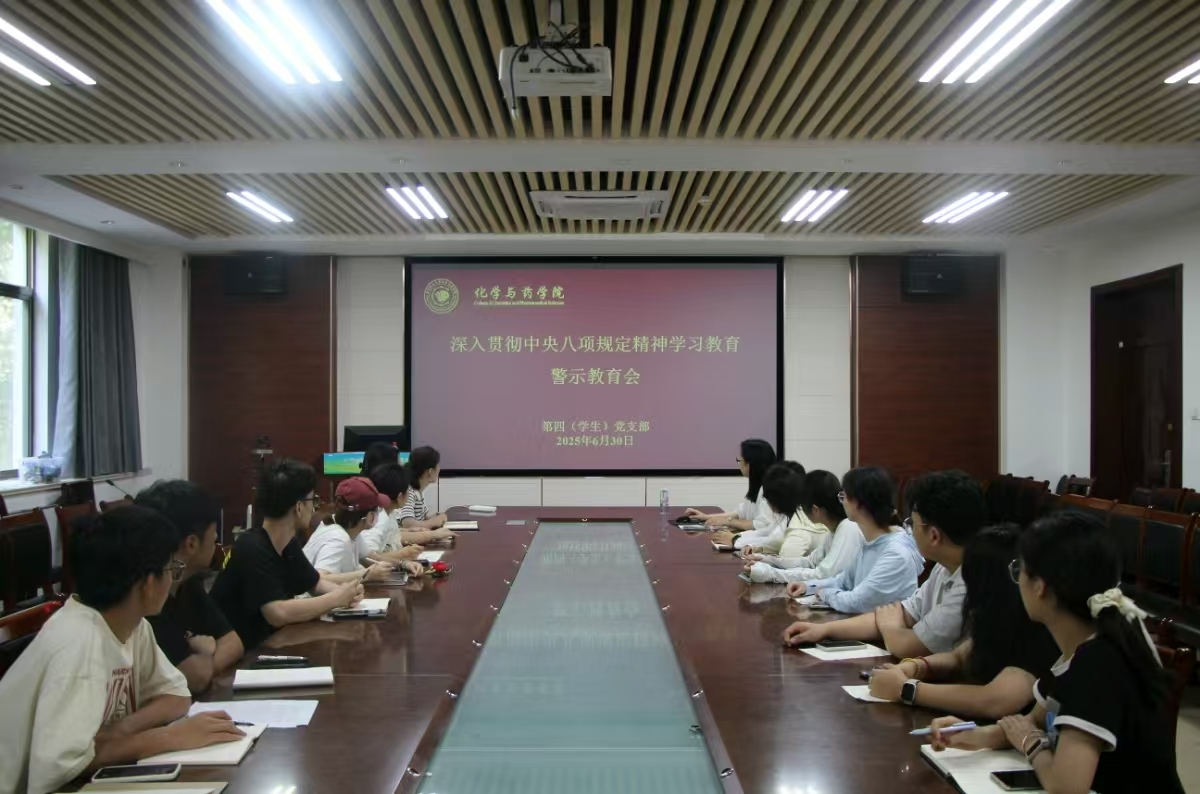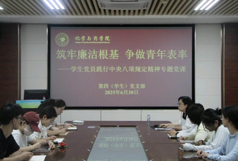 作风建设关乎党的形象与事业成败,青年党员的廉洁自律更是党风建设的重要基石。为深入贯彻中央八项规定精神学习教育,引导学生党员筑牢廉洁自律根基,6月30日,williamhill中国第四(学生)党支部于化学楼207会议室开展“筑牢廉洁根基,争做青年表率”专题党课,学院团委书记赵莹主讲,第四(学生)党支部全体成员参加。
